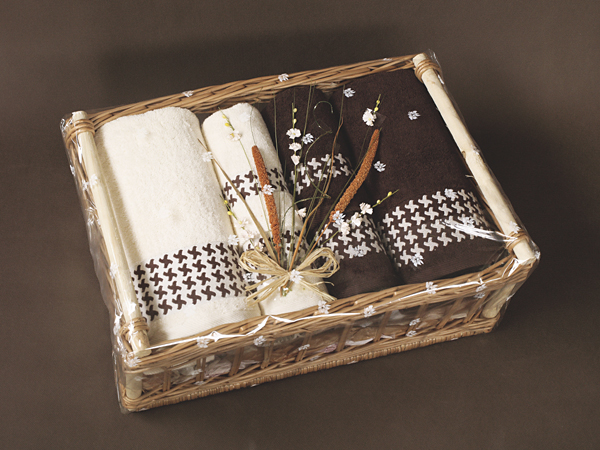 ofercie komplety ręczników, które mogą być zapakowane w wiklinowe kosze, tacki, eleganckie i ozdobne pudełka kartonowe. Są one doskonałym prezentem dla naszych bliskich.